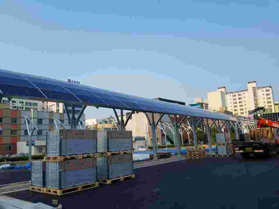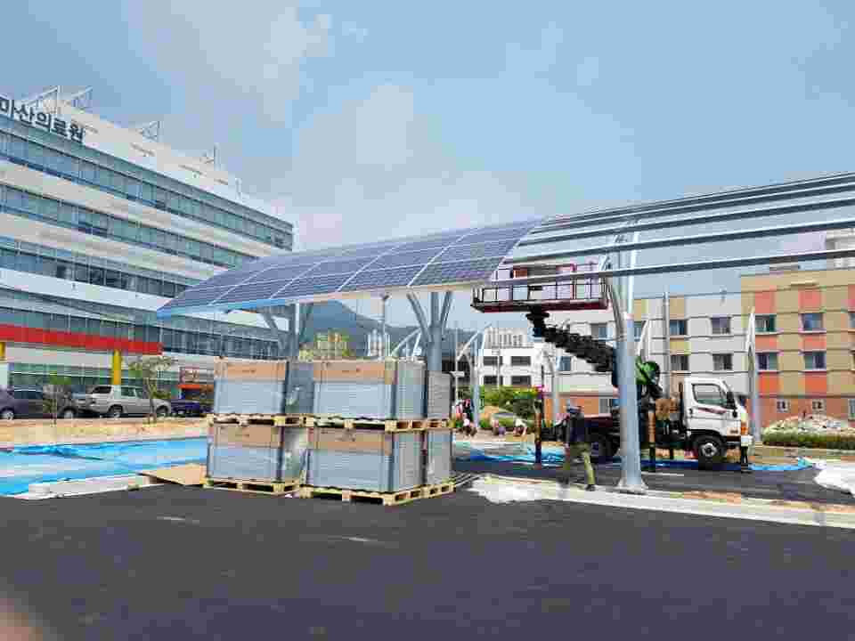 경남 창원에 완공한 마산의료원 주차장 자가용 태양광 발전설비 입니다.